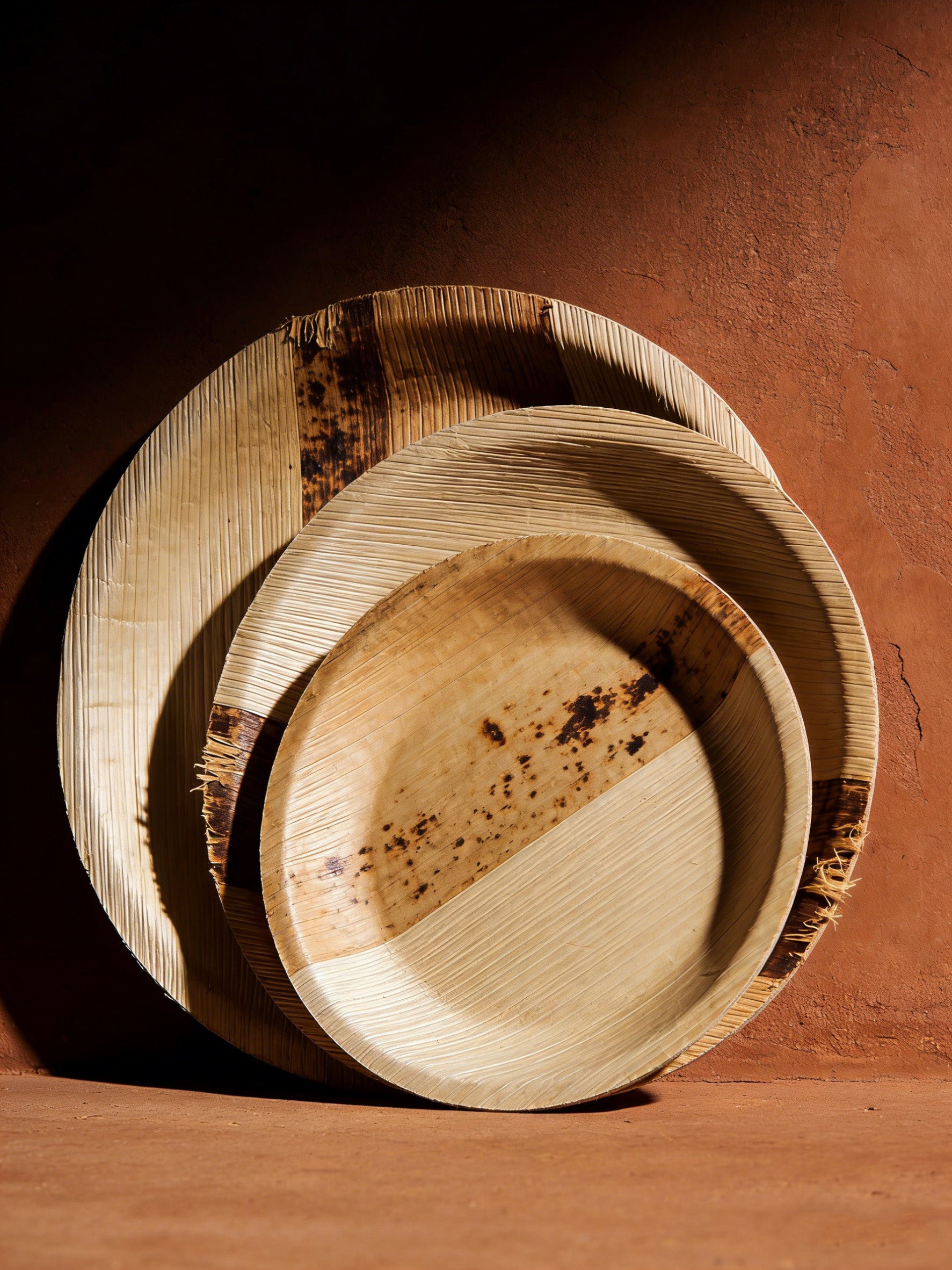 Certified to fully biodegrade within 60-90 days in a home compost environment. Unlike PLA or bagasse, our plates are made of raw leaf fibers that break down into nutrient-rich organic matter without industrial processing.